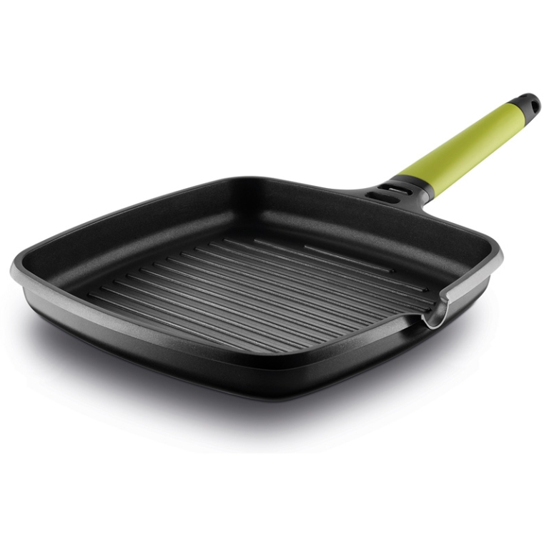 Fabricado en aluminio fundido indeformable de gran espesor y durabilidad Base de inducción Full Induction Recubrimiento antiadherente libre de PFOA de alta calidad y resistencia Mango desmontable con sistema de fijación de rosca de seguridad Garantía total de fabricación