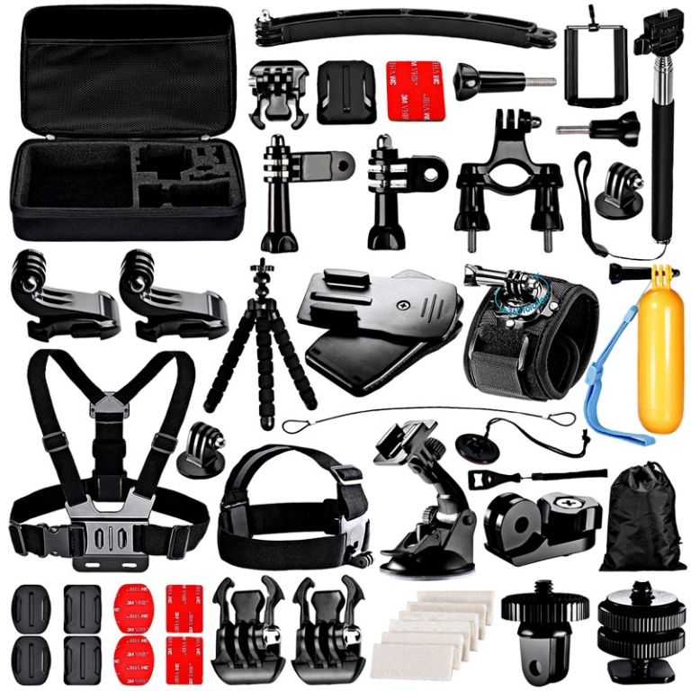 El kit definitivo de accesorios para tu cámara deportiva Enganches cordajes sujeciones boyas trípode arnés y hasta 53 accesorios que te proporcionarán el ángulo y posición que precisas en cada momento.