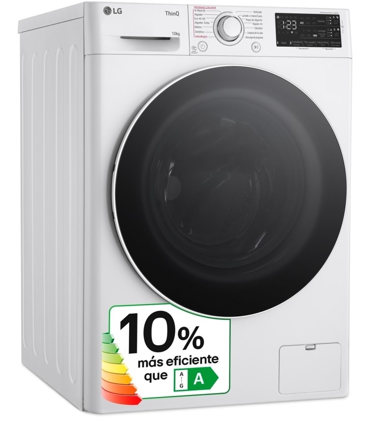 Capacidad: 10 kg Velocidad máx. de centrifugado: 400 - 1400 U/min Posibilidad de instalación bajo encimera en muebles de altura 85 cm o más. Clase de eficiencia energética A (dentro del rango de A a G)* Tecnología AquaControl Plus: ajuste de la entrada de agua en función de la carga para obtener los mejores resultados con el mínimo consumo de agua AutoDosificación de detergente y suavizante Motor ExtraSilencio con 10 años de garantía Reducción de ruido. Sistema automático de distribución de ropa: Sen Capacidad de carga (kilos): 10