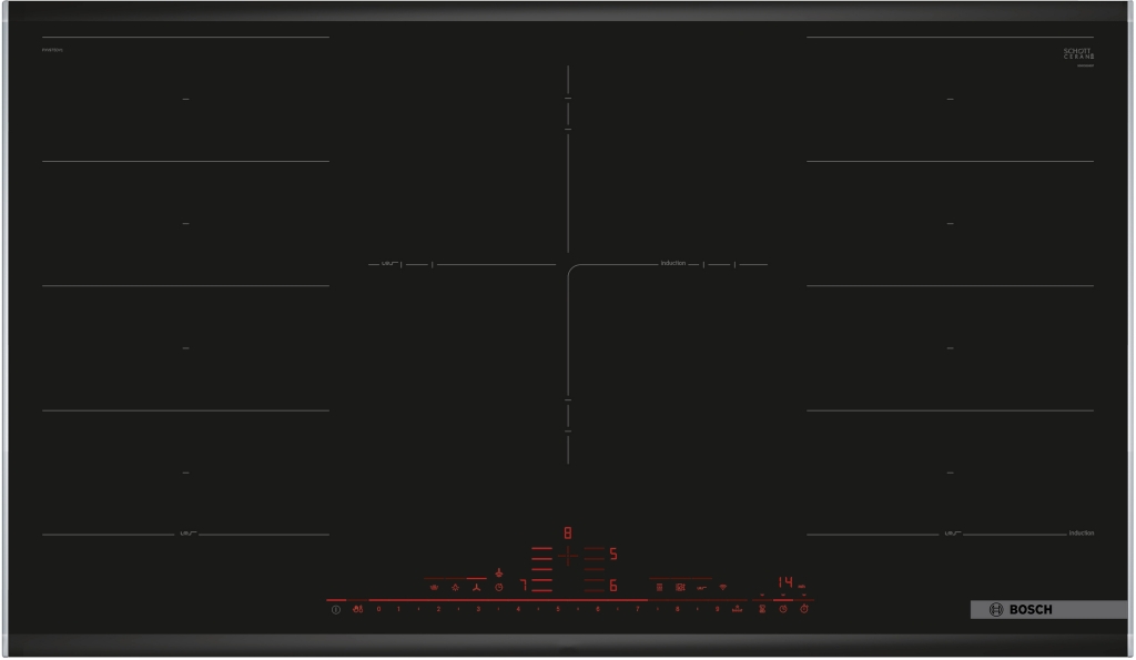 90 cm: espacio para 5 recipientes. Flexibilidad de las zonas de cocción. FlexInducción: Utiliza recipientes de diferentes formas y tamaños aprovechando los 40 cm de fondo de la zona Zona gigante triple: zona de 32 cm Zona delante izquierda: 230 mm, 200 mm, 2.2 kw (potencia max. 3.7 kw) Zona detrás izquierda: 230 mm, 200 mm, 2.2 kw (potencia max. 3.7 kw) Zona de cocción central: 210 mm, 260 mm, 320 mm, 2.2 kw (potencia máx. 3.7 kw) Zona detrás derecha: 230 mm, 200 mm , 2.2 kw (potencia max. 3.7 kw)
