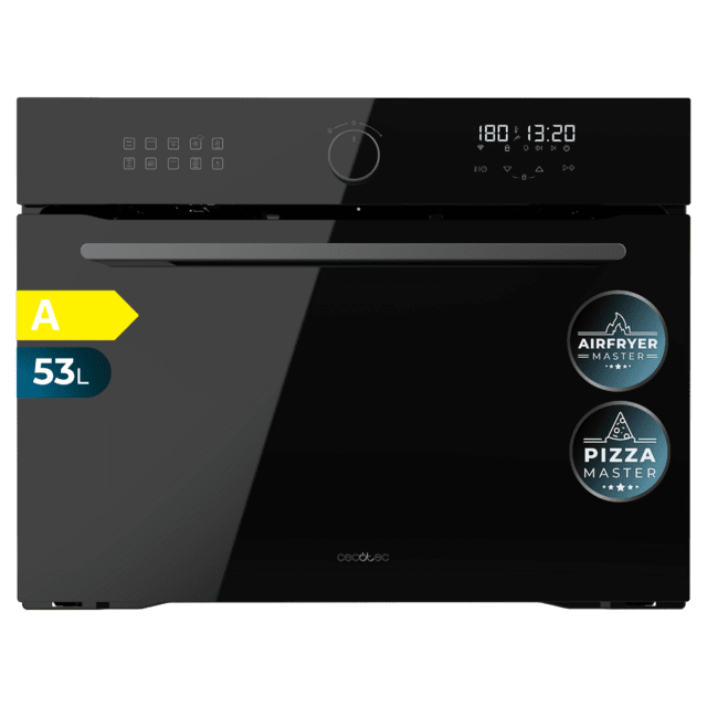 Prestaciones destacadas Home Connect: conectividad vía app TFT TouchControl Panel de mandos TouchControl Asistente de limpieza con agua Horno compacto con 12 métodos de cocción: Calor superior e inferior, Grill con aire caliente, Grill de amplia superficie, Grill, Calor inferior, Descongelar, Precalentar vajilla, mantener caliente, hornear suave, AirFry, Calor superior e inferior con aire caliente Rango de temperatura 30 °C a 300 °C Equipamiento 3 alturas de cocción Pared lisa con gradas cromad