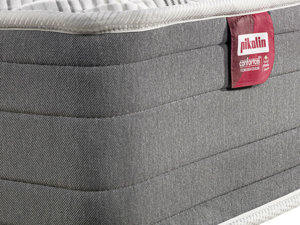 El colchón Elan está compuesto por el núcleo de espumación Confortcel y acolchado de Fibercel. El núcleo de Confortcel es el material celular de alta resiliencia que mantiene de forma eficiente el peso del cuerpo y mantiene sus propiedades para el descanso durante toda la vida útil del colchón. Su acolchado de Fibercel, es una combinación de fibra atérmica y una capa de poliéter HR que consigue crear un confort extra suave y deja pasar de forma continuada el aire durante el descanso para una mejor transpiración. Todos los colchones de Pikolin cuentan con la tecnología de higiene total Triple Barrera que protege y previene contra el desarrollo de las principales fuentes bacterianas de un colchón: ácaros, bacterias y hongos.