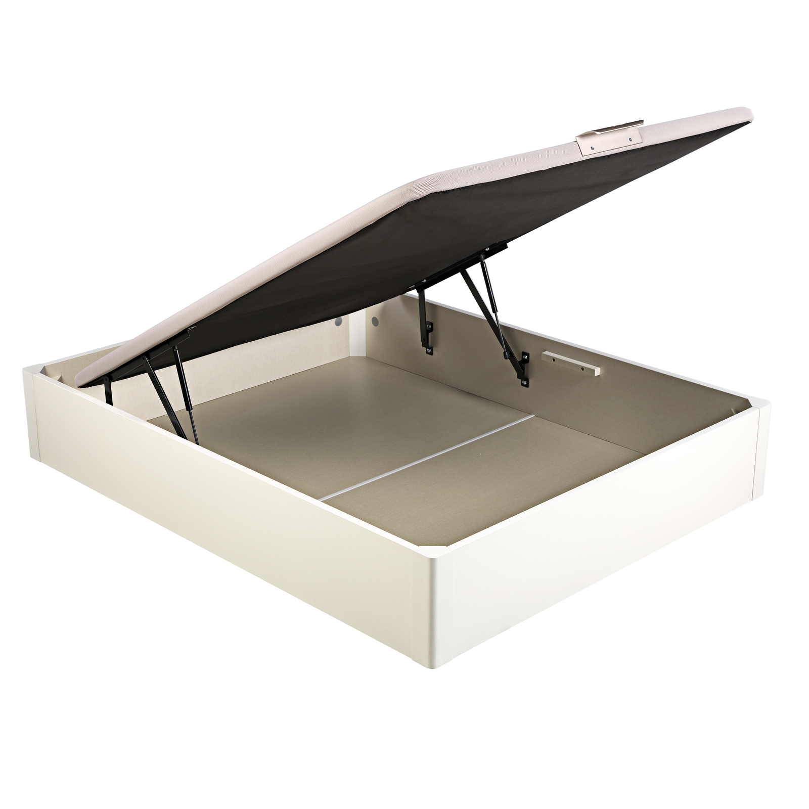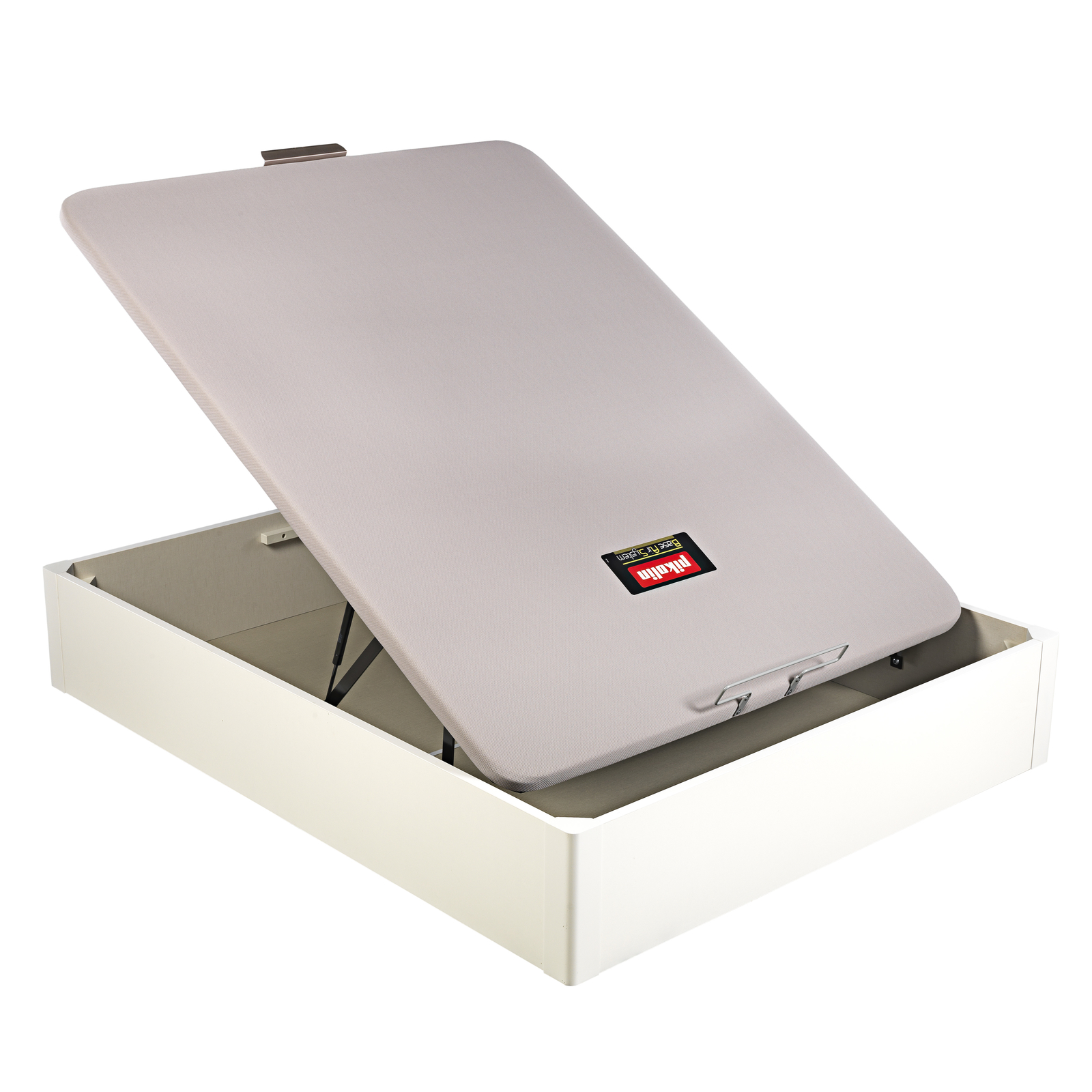 La tapa es transpirable de máxima durabilidad e incorpora una estructura metálica de acero de gran resistencia y un tapizado con tejido 3D transpirable aportando la tecnología Base Air System (B.A.S). Tiene un tirador de aluminio y un arquillo que sujeta el colchón.