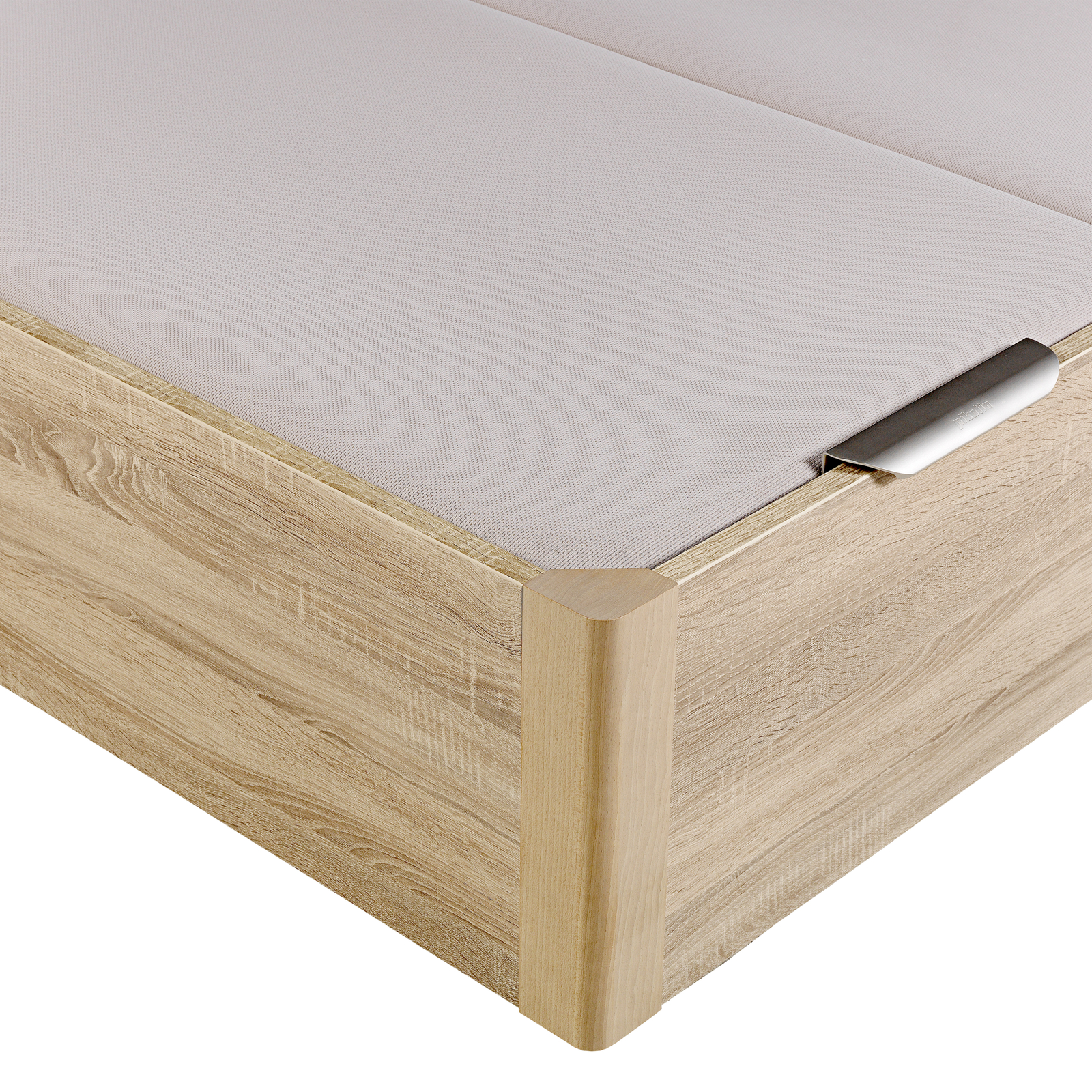 La tapa es transpirable y de máxima durabilidad que incorpora una estructura metálica de acero de gran resistencia y un tapizado con tejido 3D transpirable aportando la tecnología Base Air System (B.A.S) y tiene un tirador de aluminio anodizado y un arquillo que sujeta el colchón.