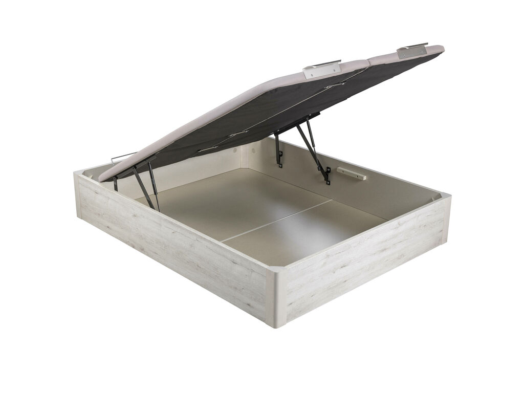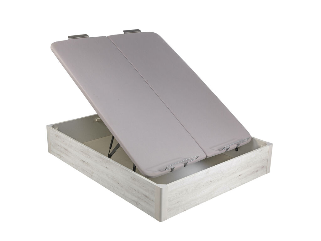 La tapa es transpirable de máxima durabilidad e incorpora una estructura metálica de acero de gran resistencia y un tapizado con tejido 3D transpirable aportando la tecnología Base Air System (B.A.S). Tiene un tirador de aluminio y un arquillo que sujeta el colchón.