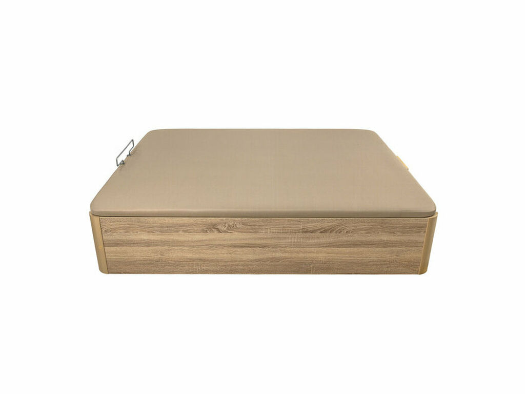 Para una experiencia de uso más cómoda, este canapé está equipado con un tirador de madera, un arquillo para mantener el colchón en su lugar, y un sistema de apertura frontal suave gracias a los pistones hidráulicos integrados. La cubeta está construida con laminados de 25 mm de espesor tanto en el interior como en el exterior y sus cuatro esquinas de madera maciza añaden durabilidad y estabilidad. Posee en su diseño líneas rectas en el cabecero y curvas en el piecero para un acabado estéticamente más atractivo. Este canapé cuenta con 41 cm de altura al suelo de los cuales 35 cm son íntegramente dedicados a almacenaje.